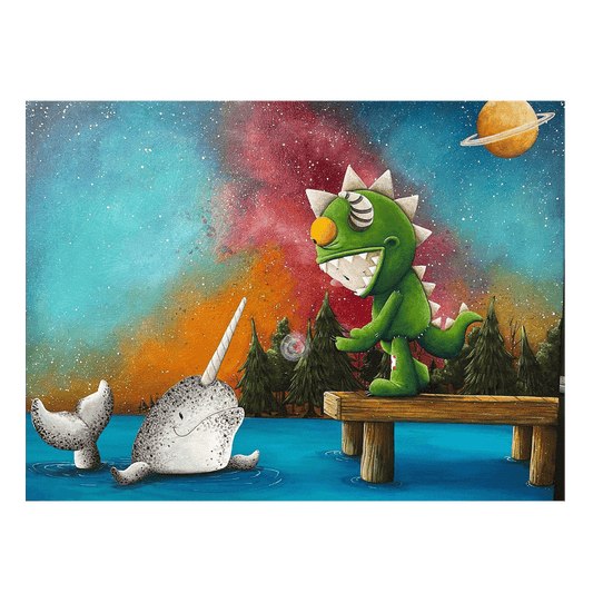 The vivid colors and captivating characters invite you into an emotional ride that is welcomed by the mind and the heart. Simple landscapes set the stage to the value of emotional attachment that can be compared to no other. Influences from some of this century's greatest artists are hard to find in his pieces, but are drenched deep in the fabric of what puts a Napoleoni painting together.