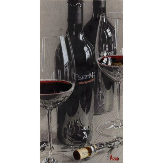 Having been drawn to the color red his whole life, he explains, “I painted tennis shoes, Radio Flyer wagons and other things in their natural state – how they are used. Similarly, I like to capture the feeling of being around a bottle of wine.” After beginning his study of red wine, Arvid knew he had discovered something when his paintings featuring red wine were being purchased before they were finished. Arvid is awed by the response to his work, “Wine is a great subject because people are familiar with it; they really connect to it. My paintings are really the landscapes between people sharing wine - it’s amazing that my collectors find personal fulfillment in my work, especially when I’m just doing what I love.”