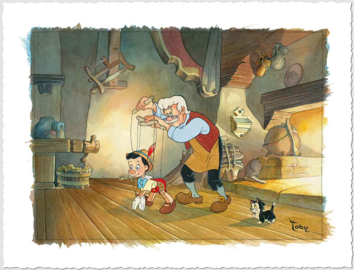 Just as those five films marked Walt's grand entrance into feature length storytelling they, quite appropriately, set the stage for the first five limited edition giclée's in Bluth's Disney Fine Art portfolio. Infused with all the depth, texture and richness of Toby's original watercolors these fine prints will be enjoyed for generations, very much in the spirit of the timeless classics that inspired them.