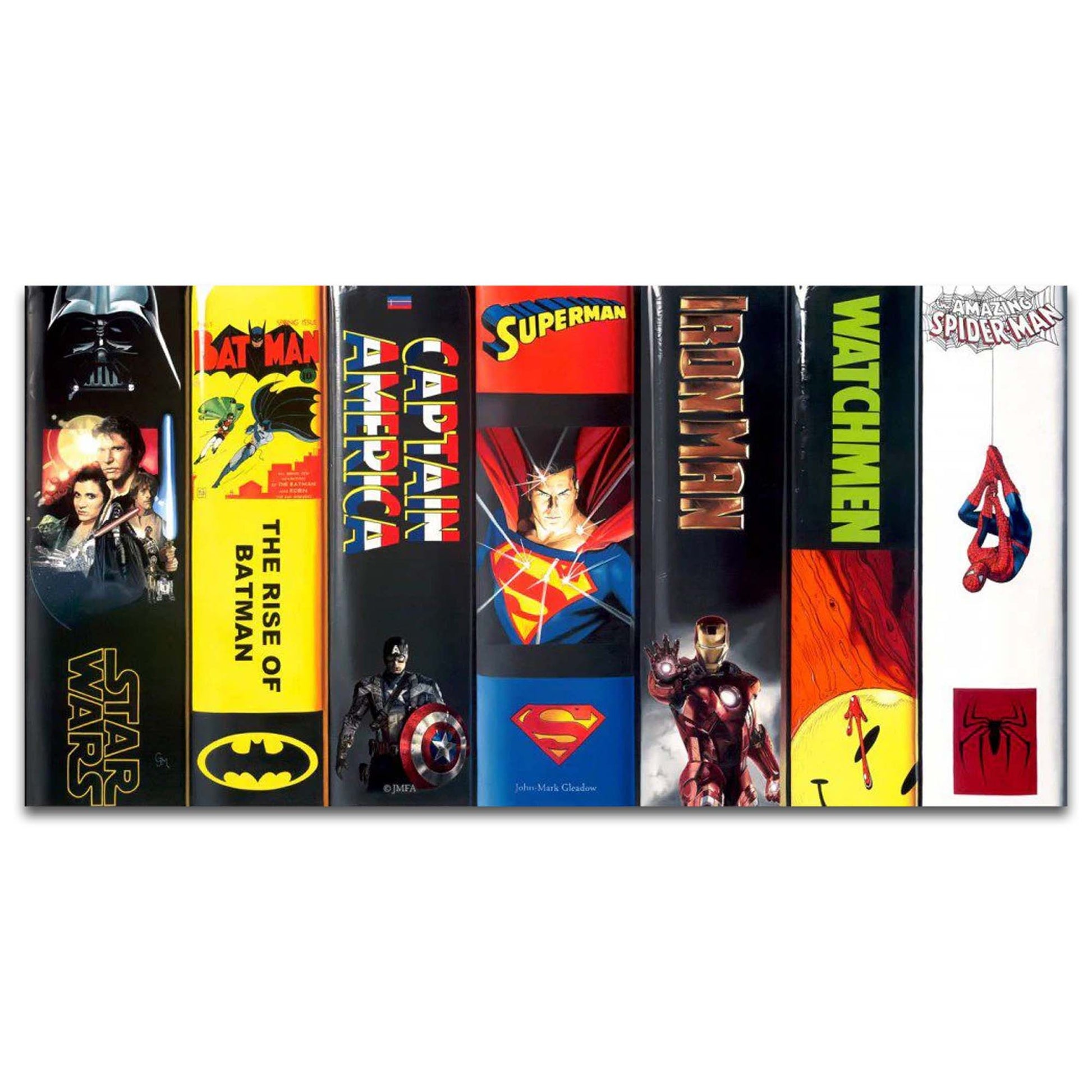 “Heroes” by John-Mark Gleadow is a spirited homage to the world of iconic superheroes, rendered with the artist’s hallmark hyper-real bookshelf motif. In this vibrant piece, Gleadow transforms durable cultural icons—characters like Superman, Batman, Spider-Man, and Captain America—into book-spine visuals that evoke memories of childhood comics and bold narratives. Drawing from his personal connection to pop culture, the work places Superman at the central position, noting his deep influence on the piece, and integrates other legendary forces from the comic-book genre and beyond.