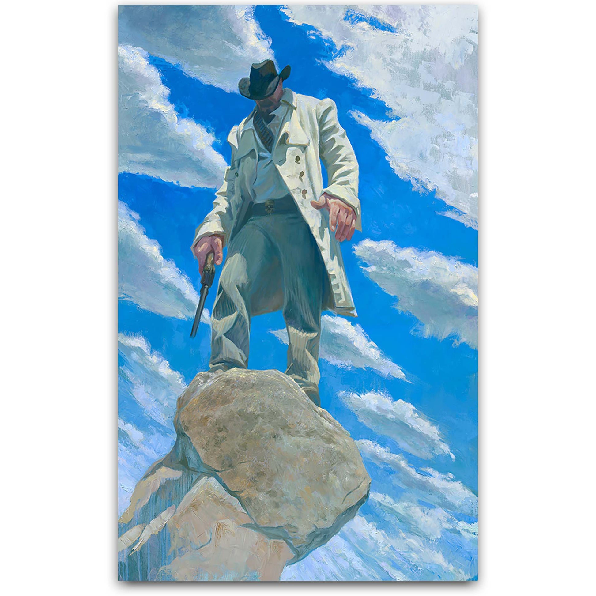 In his latest work, Respawn, Gabe explores a universal truth of the human experience through an archetypal figure from American mythology — the self-made individual standing triumphantly at the summit of his own hard-won success. He looks out over the path he’s climbed, basking in the satisfaction of how far he’s come under his own power.